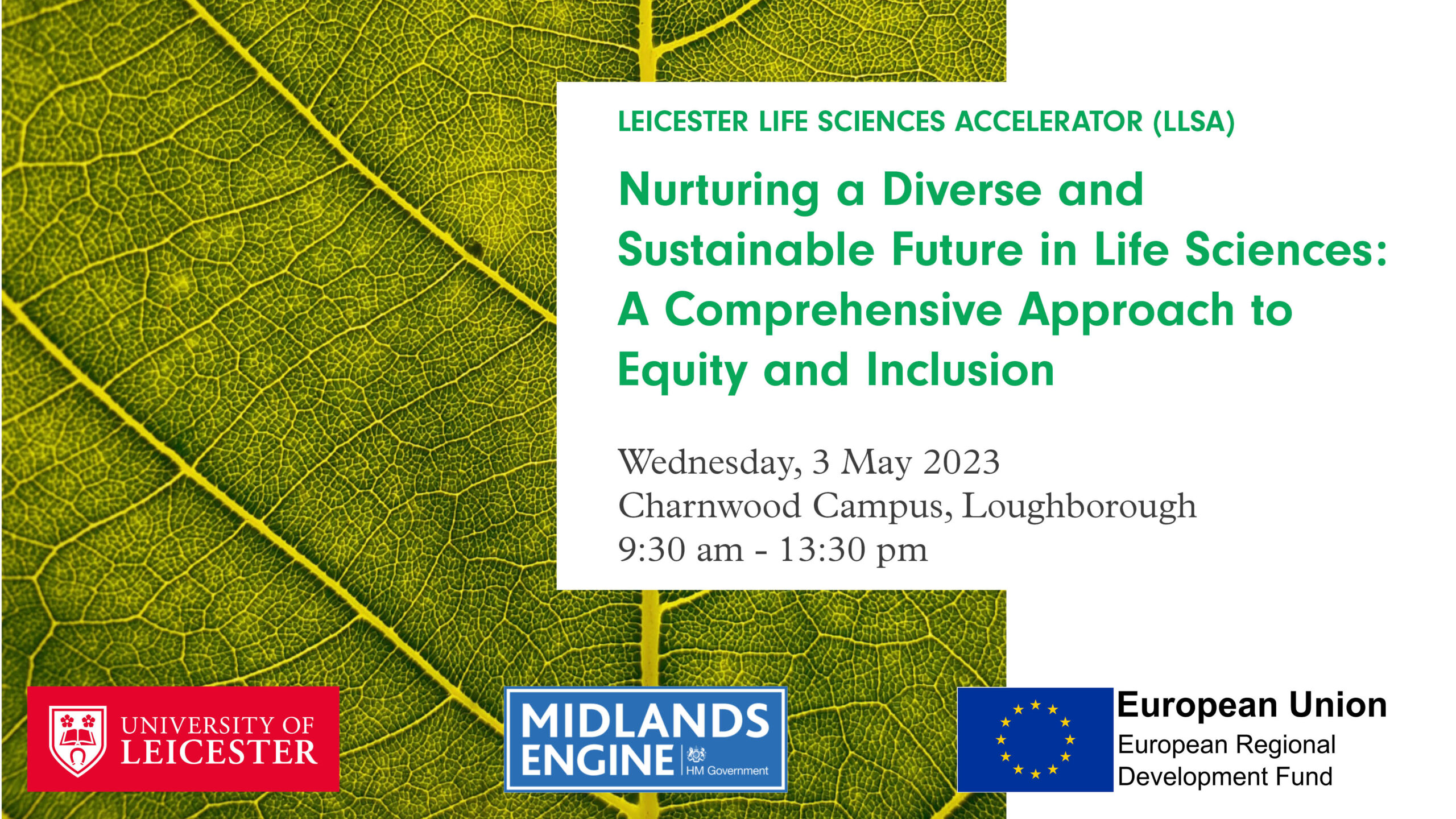 We are excited to invite you to the upcoming workshop, “Nurturing a Diverse and Sustainable Future in Life Sciences: A Comprehensive Approach to Equity and Inclusion.” delivered by Leicester Life Sciences Accelerator (LLSA).